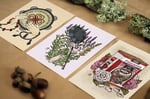 - Pack of 3 postcards with illustrations of traditional instruments: